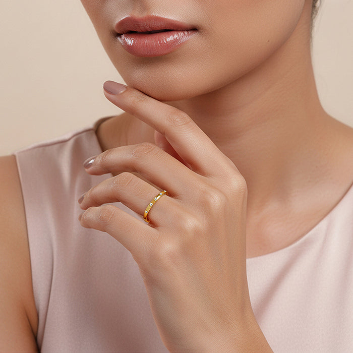 Every glance, every gesture, every sparkle counts. This golden ring for women with a flush setting is designed for those who love subtle brilliance with confidence.