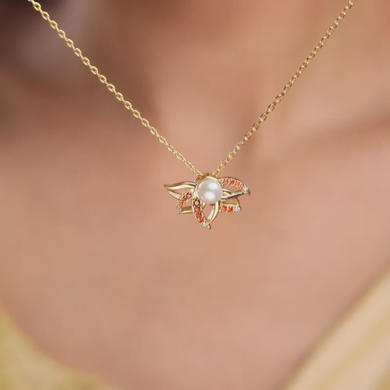 This gold plated necklace for women features a flower motif studded with coloured zircons. A pearl is set in the centre. Designed in Italy. Inspired by India. Embrace the goddess within with the Shakti Collection by GIVA x Anna Giulia Chicco.