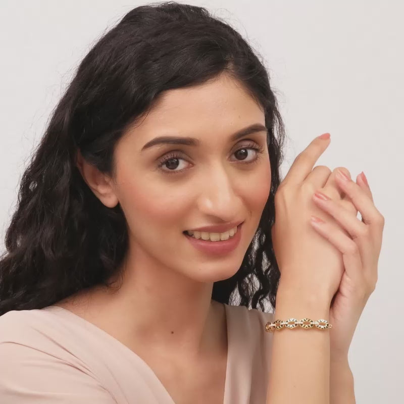 Style this bracelet with a grey pleated saree and delicate belt.