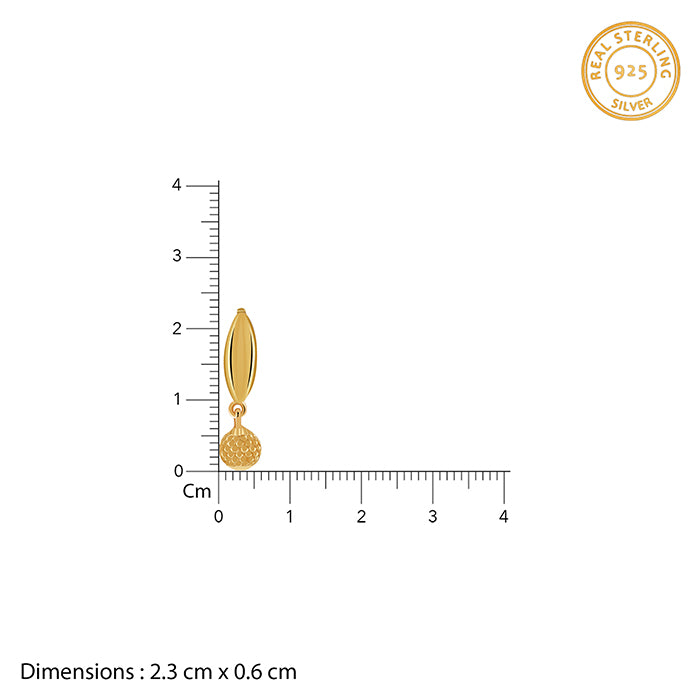 Step into the spotlight with these gold plated earrings for women, featuring a huggie hoop and a dangling textured sphere. The diamond-cut surface of the globe charm create a radiant, high-shine effect that dances with your every movement. Barkha Singh x GIVA brings to you the Glow in Motion collection that celebrates CNC craftsmanship for the first time in silver.