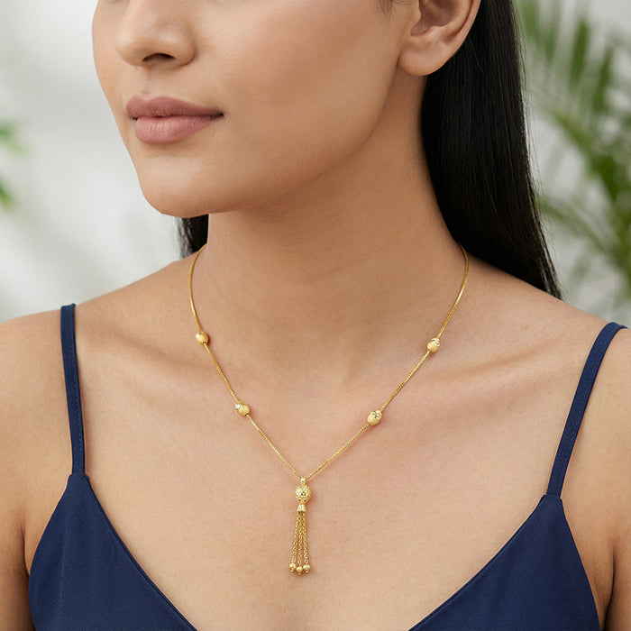 Stop searching. This gold plated necklace is the definitive "wow" factor your wardrobe is missing. With the shimmering box chain to the luxe negligee drop. It’s a piece that doesn't just sit there; it commands the conversation. Barkha Singh x GIVA brings to you the Glow in Motion collection that celebrates CNC craftsmanship for the first time in silver.