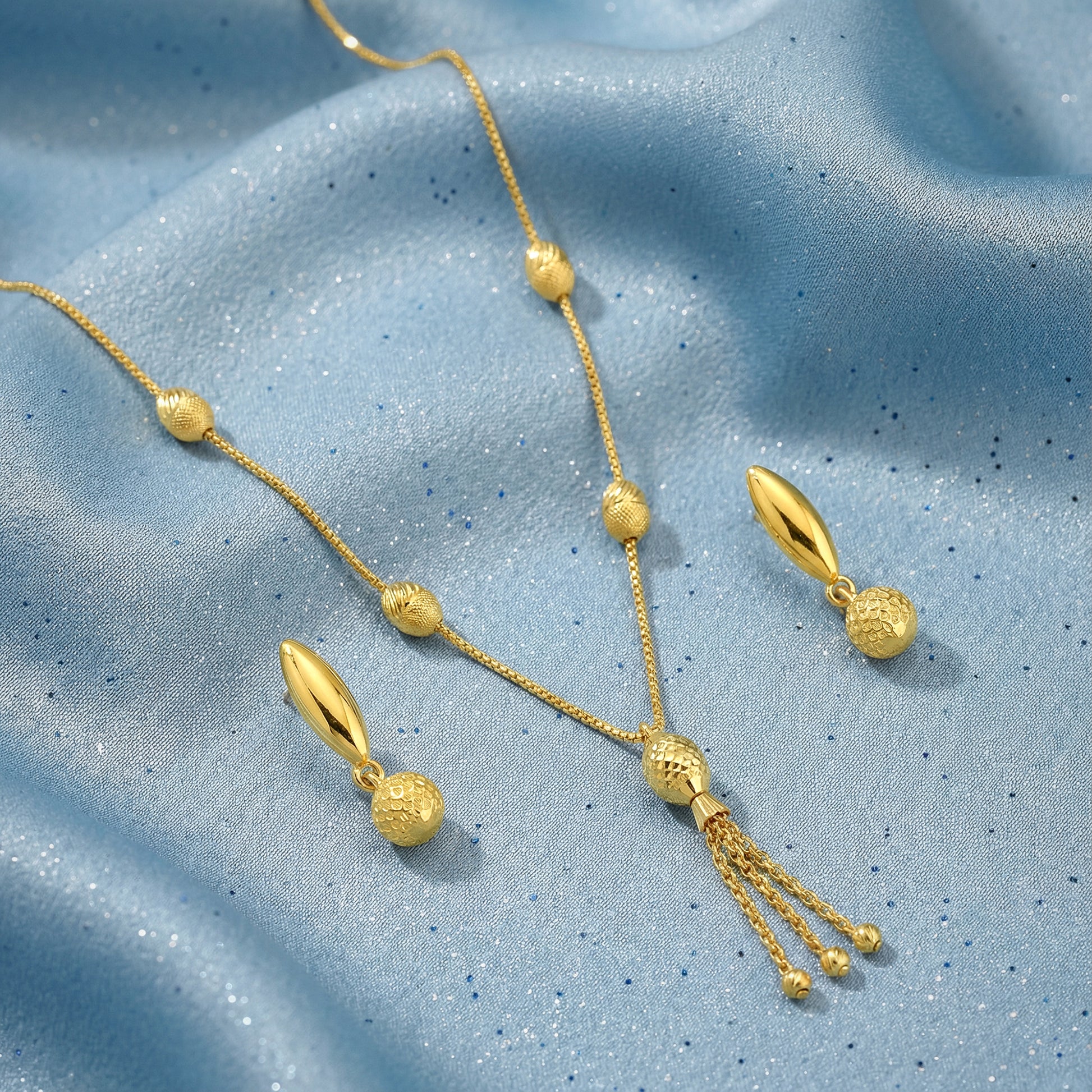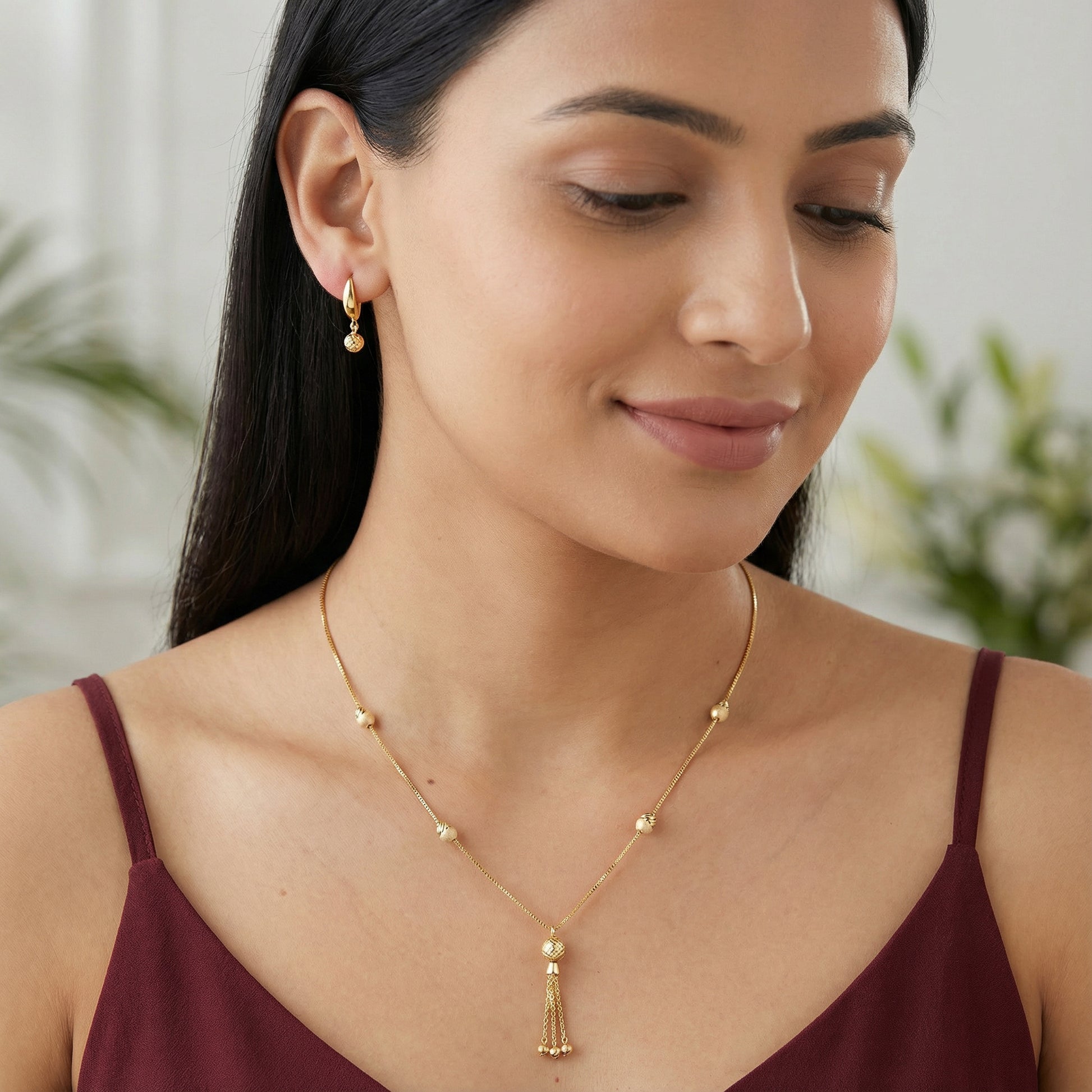 Stop searching. This gold plated set includes a necklace and matching earrings. It is the definitive "wow" factor your wardrobe is missing. With the shimmering box chain to the luxe negligee drop. It’s a piece that doesn't just sit there; it commands the conversation. Barkha Singh x GIVA brings to you the Glow in Motion collection that celebrates CNC craftsmanship for the first time in silver.