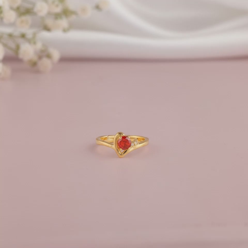 Feel every beat, make every moment count. This golden ring for women captures the rhythm of love in a sleek, modern design, accented with coloured zircons.