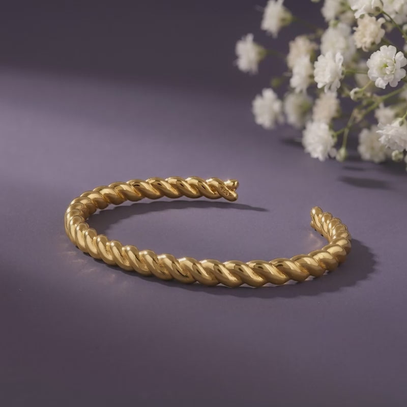 Inspired by the intertwining paths of destiny, this cuff bracelet symbolises strength and eternal connection. The design features a bold, rope-style helix crafted with a high-polish gold plated finish.