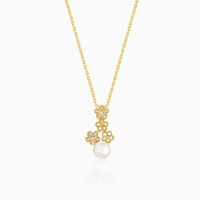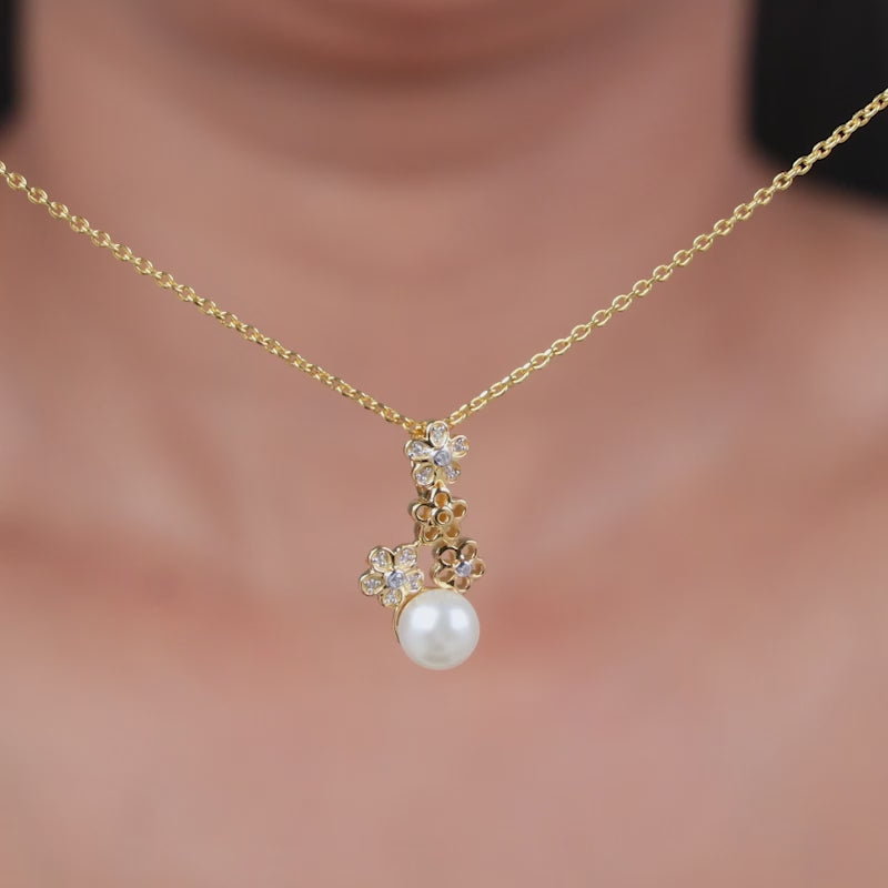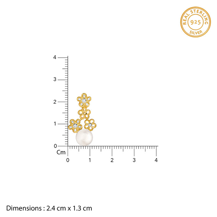 Gold plated zircon-studded blossoms cascade into a radiant pearl that catches light from every angle. This one turns minimal outfits into styled moments instantly. An ode to timeless beauty, our freshwater 'Pearl Collection' is designed to complement every woman with refined, classic elegance.
