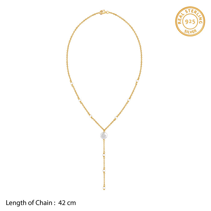 Golden Kiera Pearl Lariat Necklace