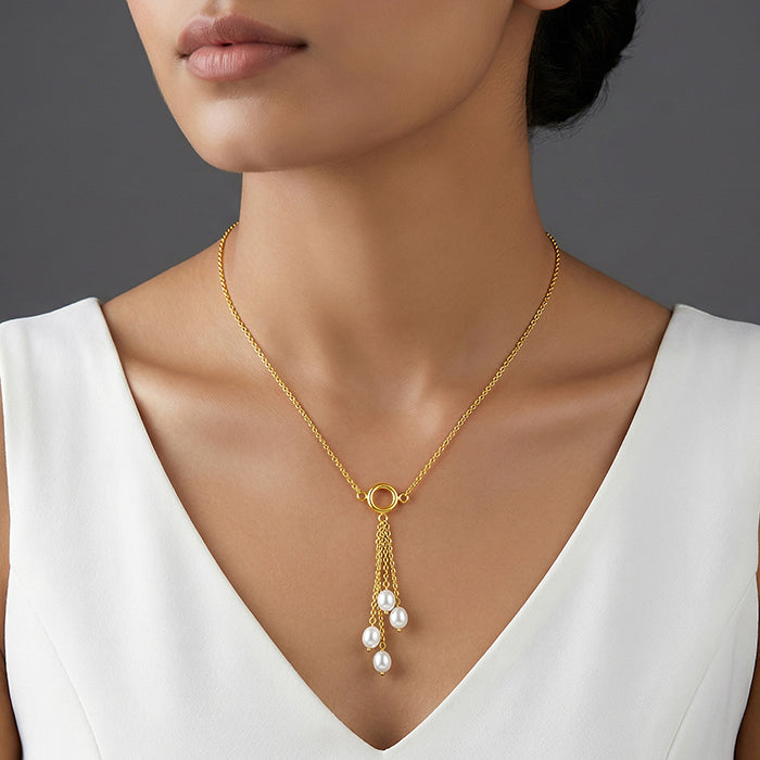 Golden Lariat Pearl Necklace