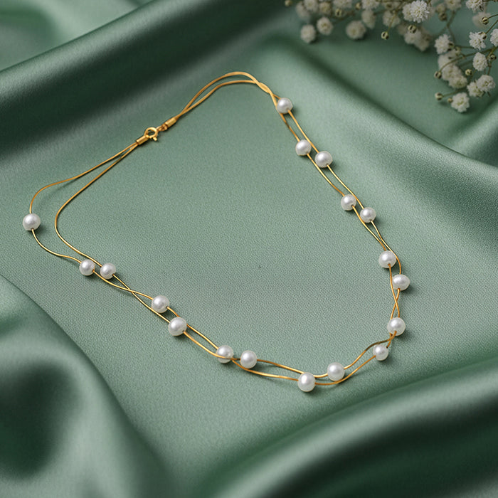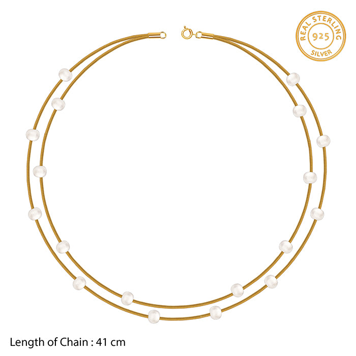 Easy to style and impossible to ignore, this dual-layered gold plated necklace with spaced pearls brings a modern twi...