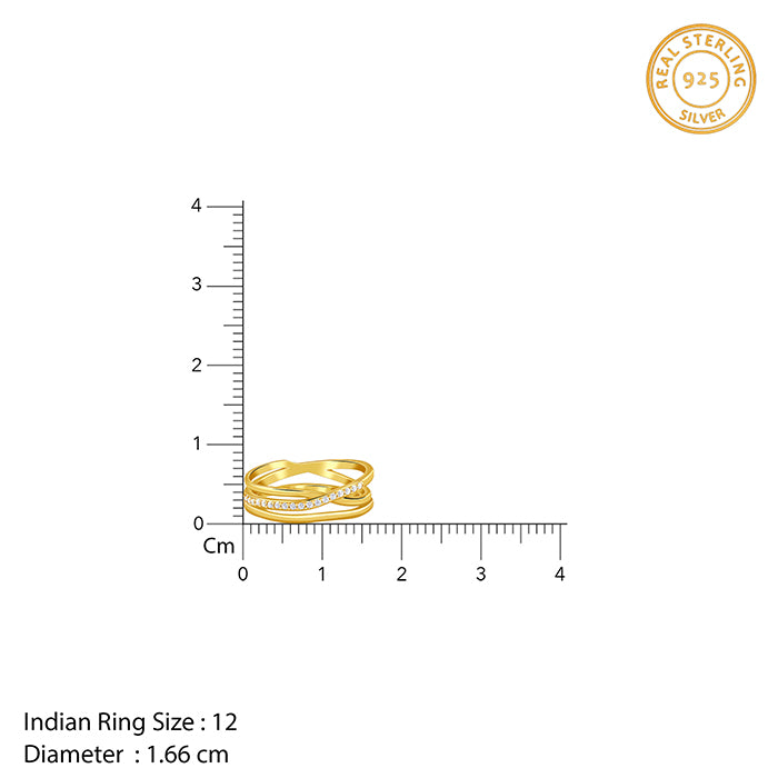 She gravitates towards pieces that balance strength and shine. This silver ring with gold plating features a criss-cross band design, finished with zircon detailing that catches the light from every angle.
