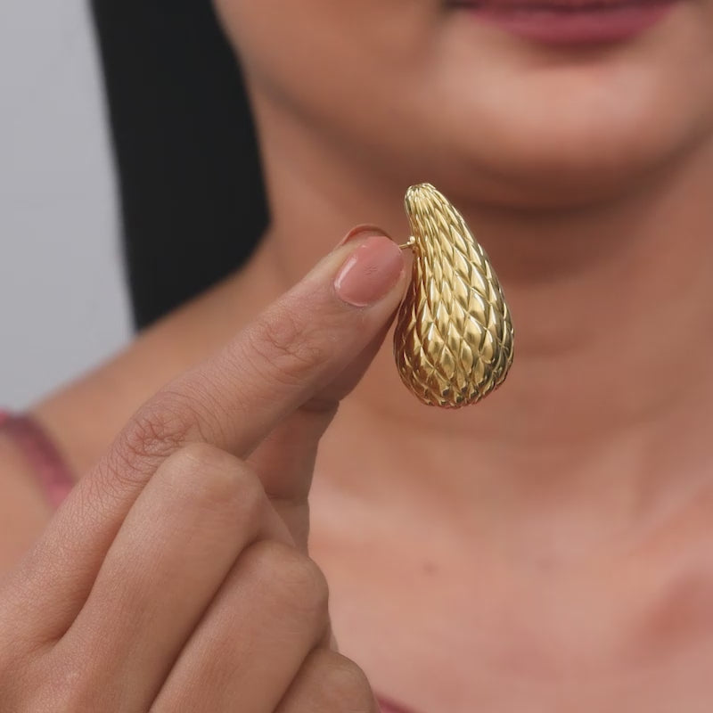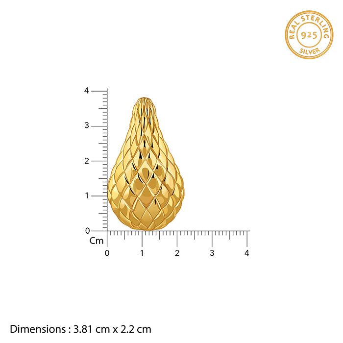 Add a refined touch of texture to your ensemble with these gold-plated earrings, designed to catch the light and draw attention. These studs feature a bold teardrop silhouette with an intricate diamond-pattern texture for a multidimensional finish. Barkha Singh x GIVA brings to you the Glow in Motion collection that celebrates CNC craftsmanship for the first time in silver.