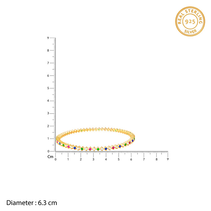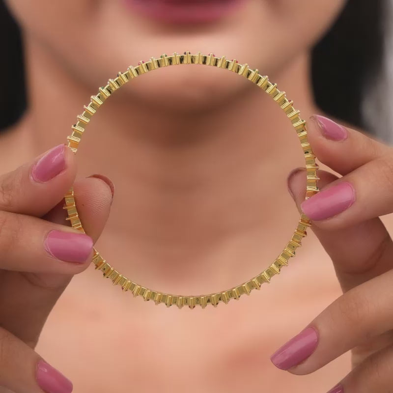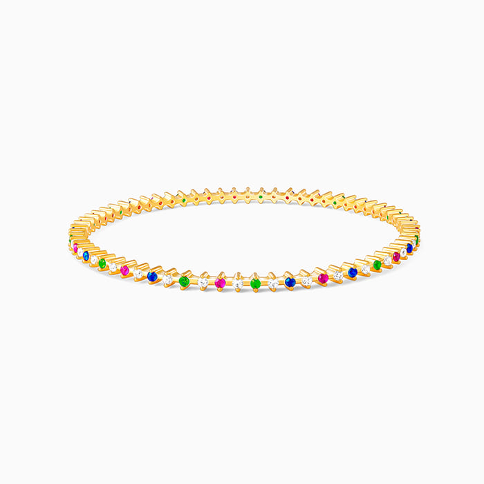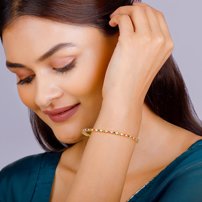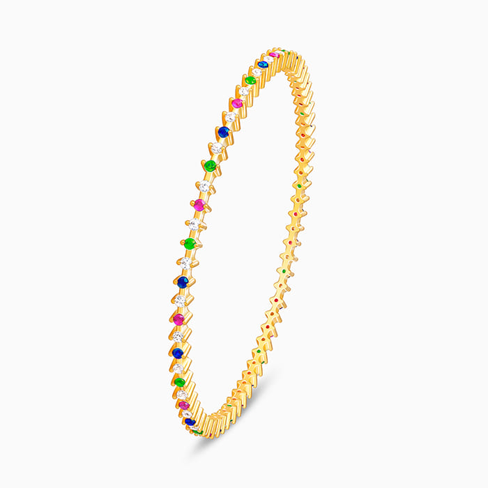 This golden bangle has a gorgeous design with multicoloured stones placed alternatively.