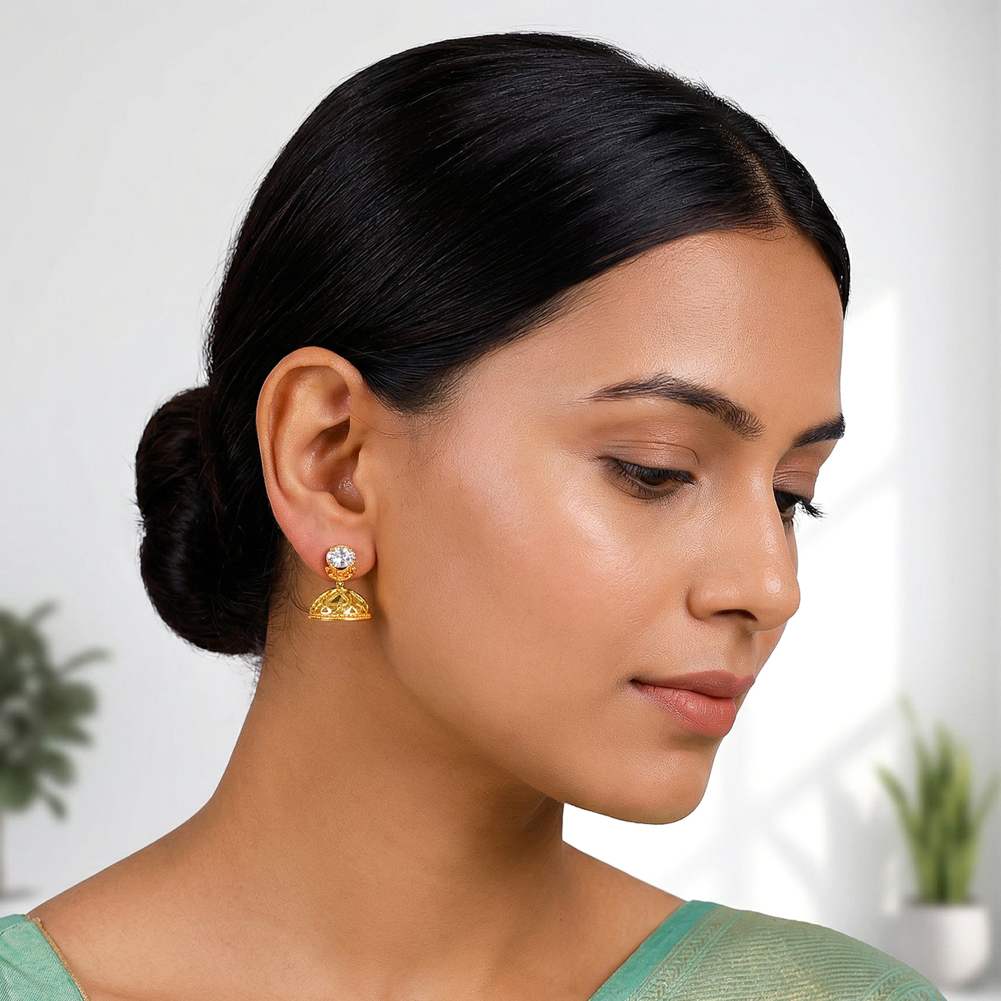 Style these Jhumkis with a maroon silk saree.