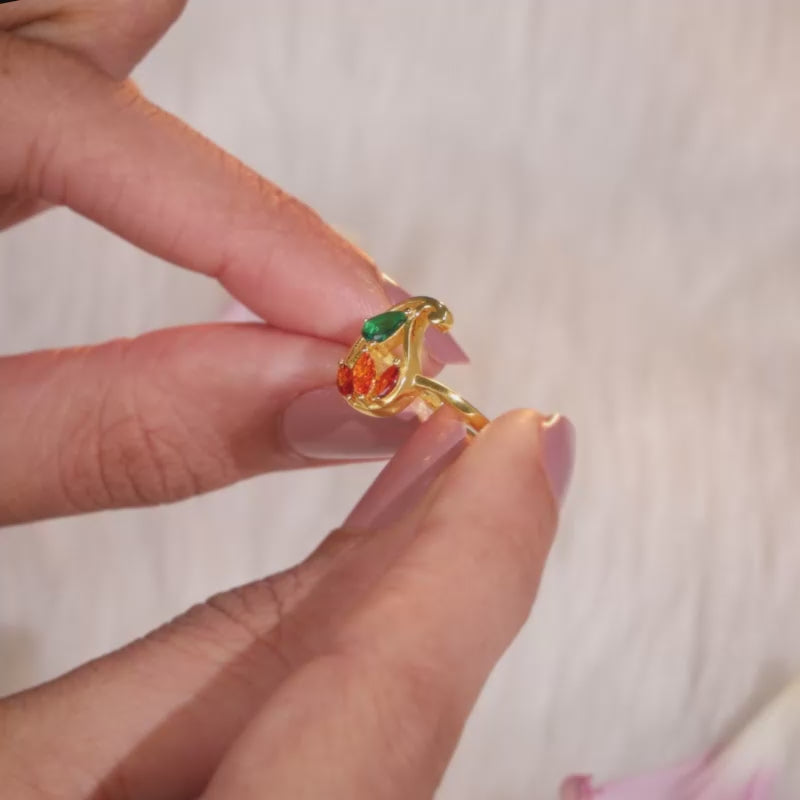 This gold plated ring for women features a mango-inspired design studded with coloured zircons. Designed in Italy. Inspired by India. Embrace the goddess within with the Shakti Collection by GIVA x Anna Giulia Chicco.