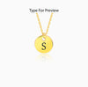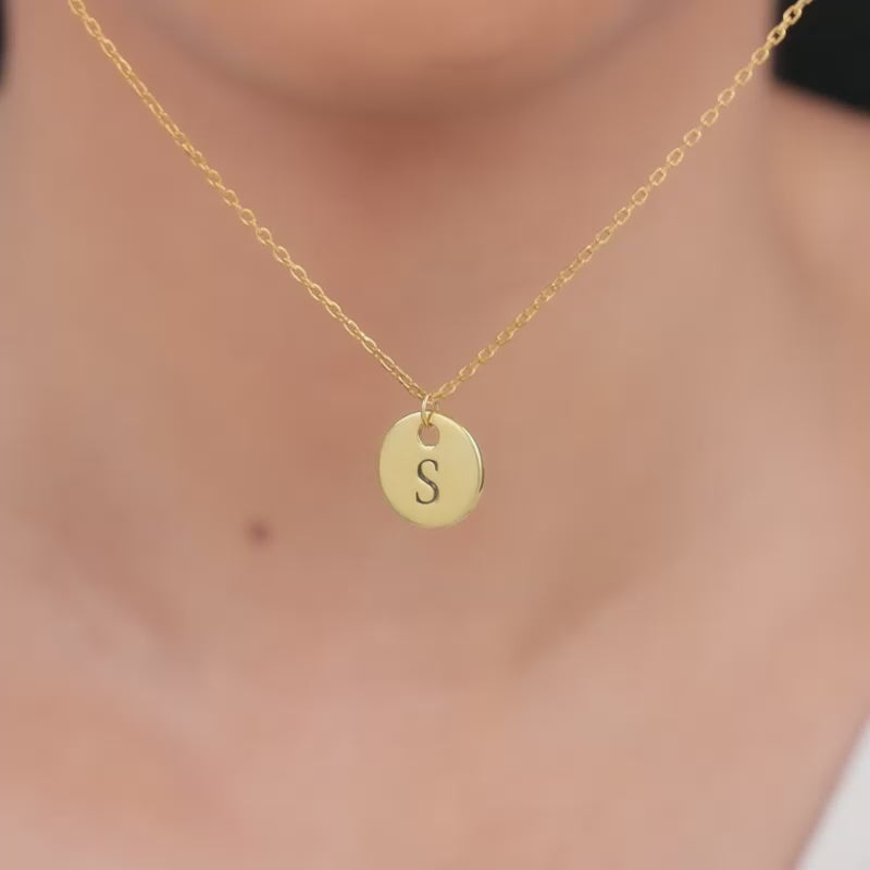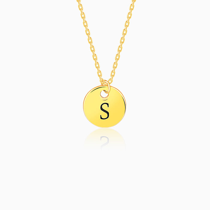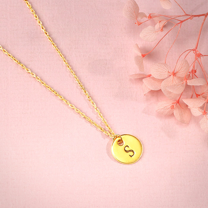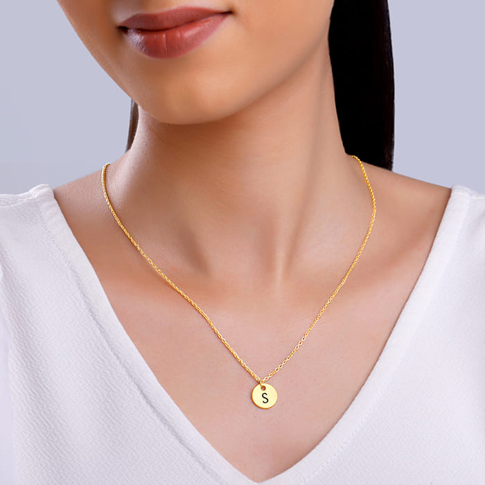 This personalised gold plated pendant with link chain for women features a circular motif engraved with an initial of your choice.