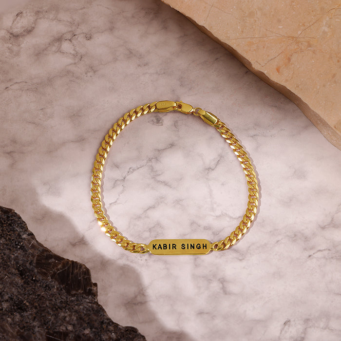 Bold yet personal, this vermeil chain bracelet features a sleek engraved name plate that makes it truly yours. Designed to stand out while staying versatile, it’s made for everyday confidence.