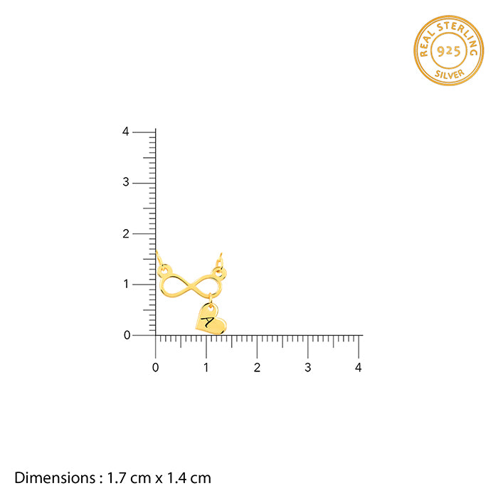 This personalised gold-plated infinity charm necklace features an infinity motif with a dangling heart.