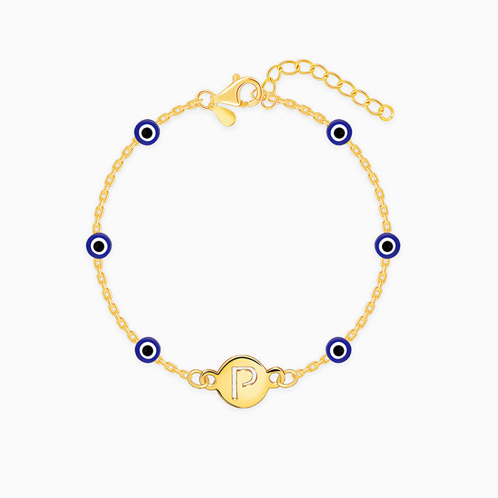 Golden Personalised Evil Eye Initial Bracelet