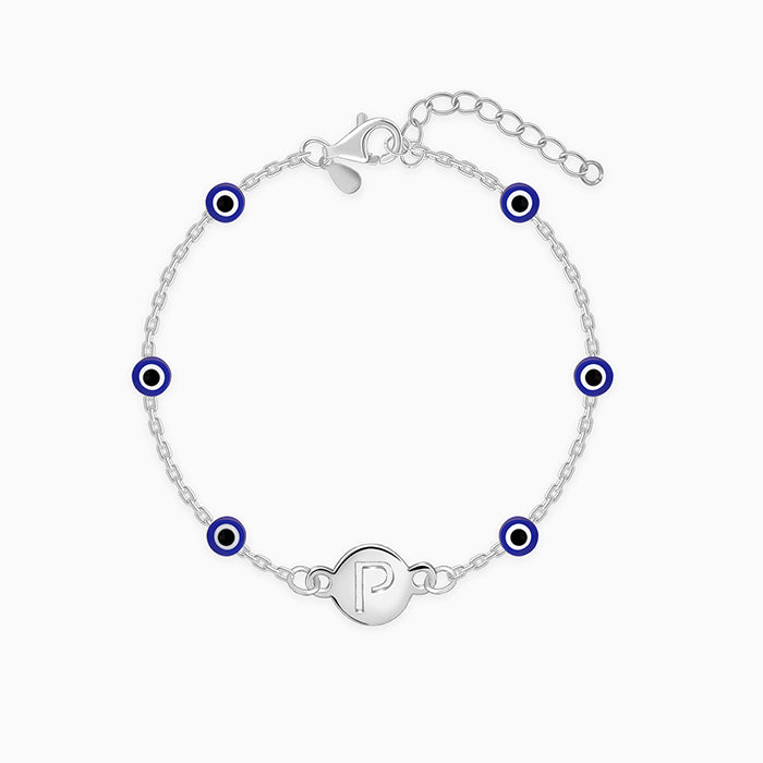 This bracelet carries your initial with pride while the evil eye motifs promise to keep the bad vib...