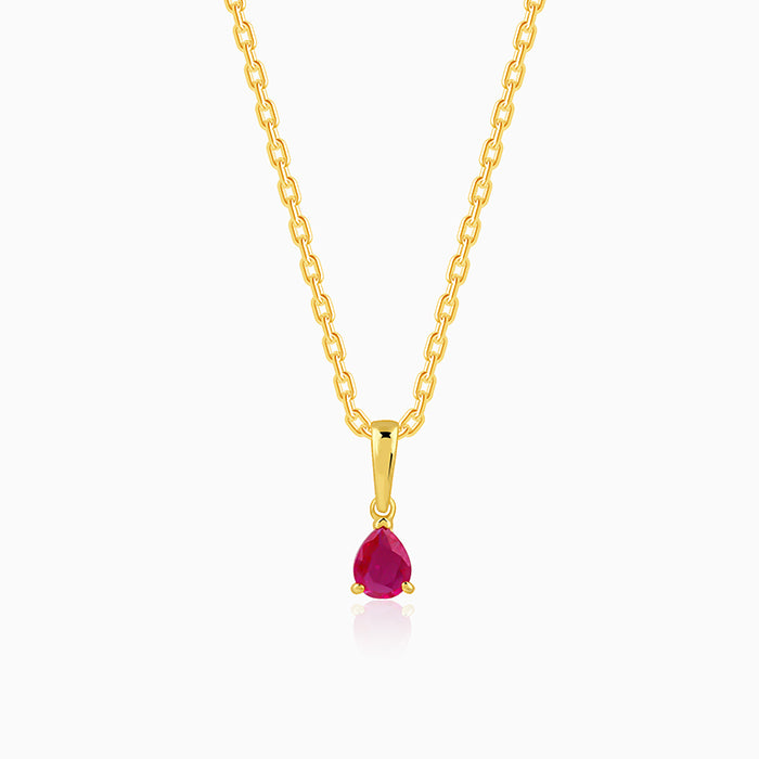 This gold plated pendant for women features a pear-shaped design. This design has a pink-coloured zircon at the centre. The pendant comes with a link chain.
