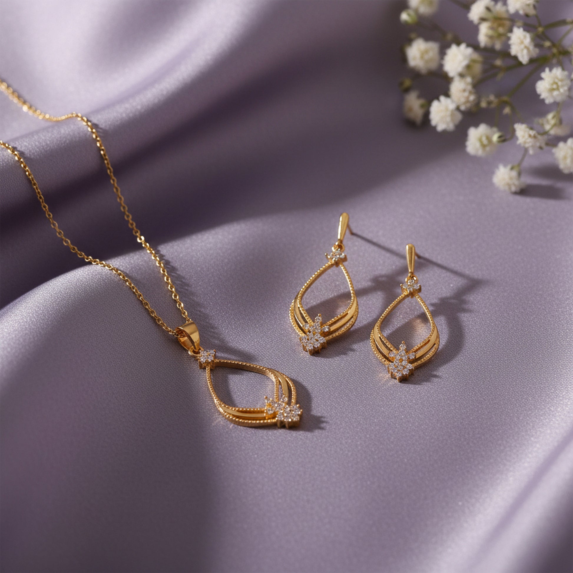 Necklace and earrings are good and color is good. earring screw needs improvement and strength.