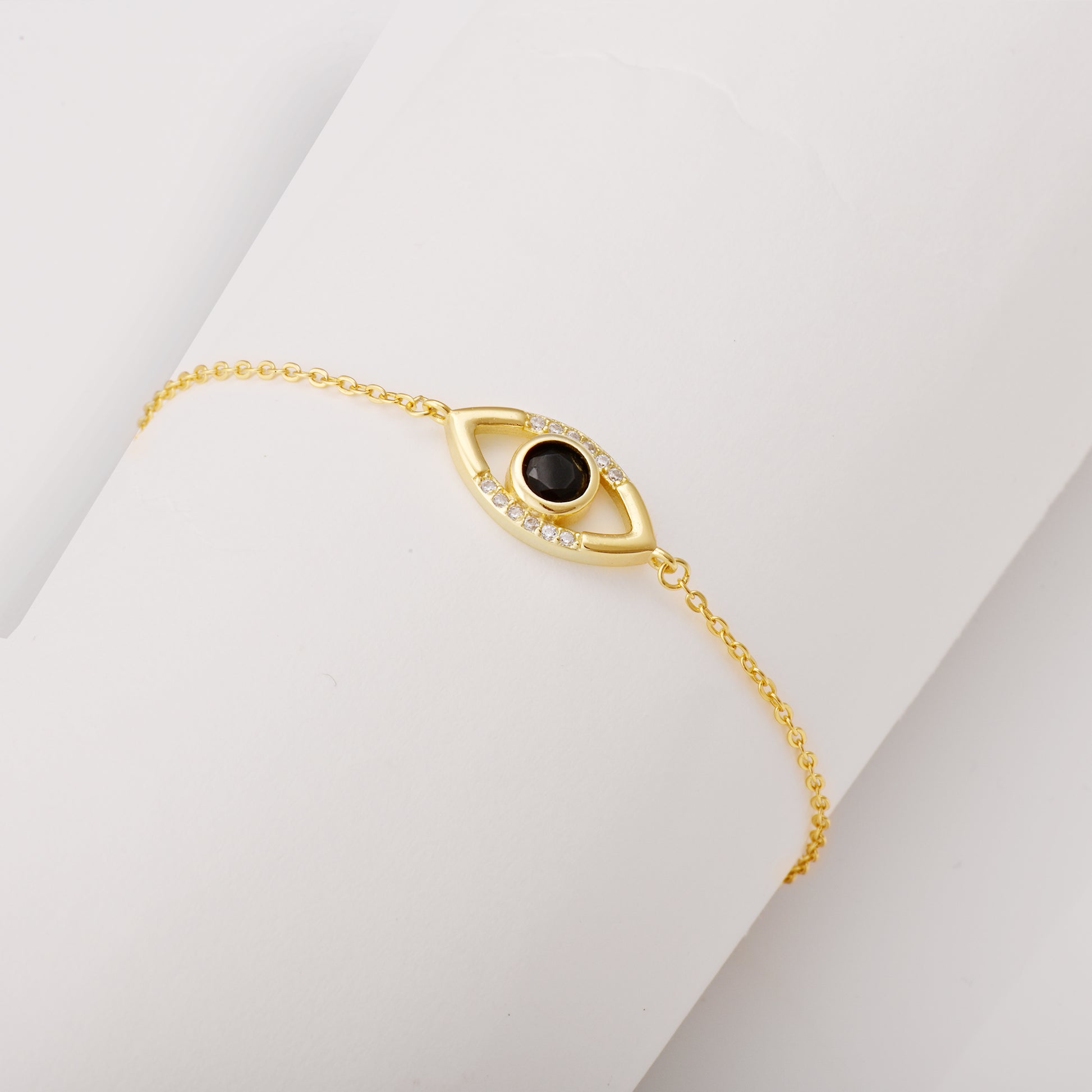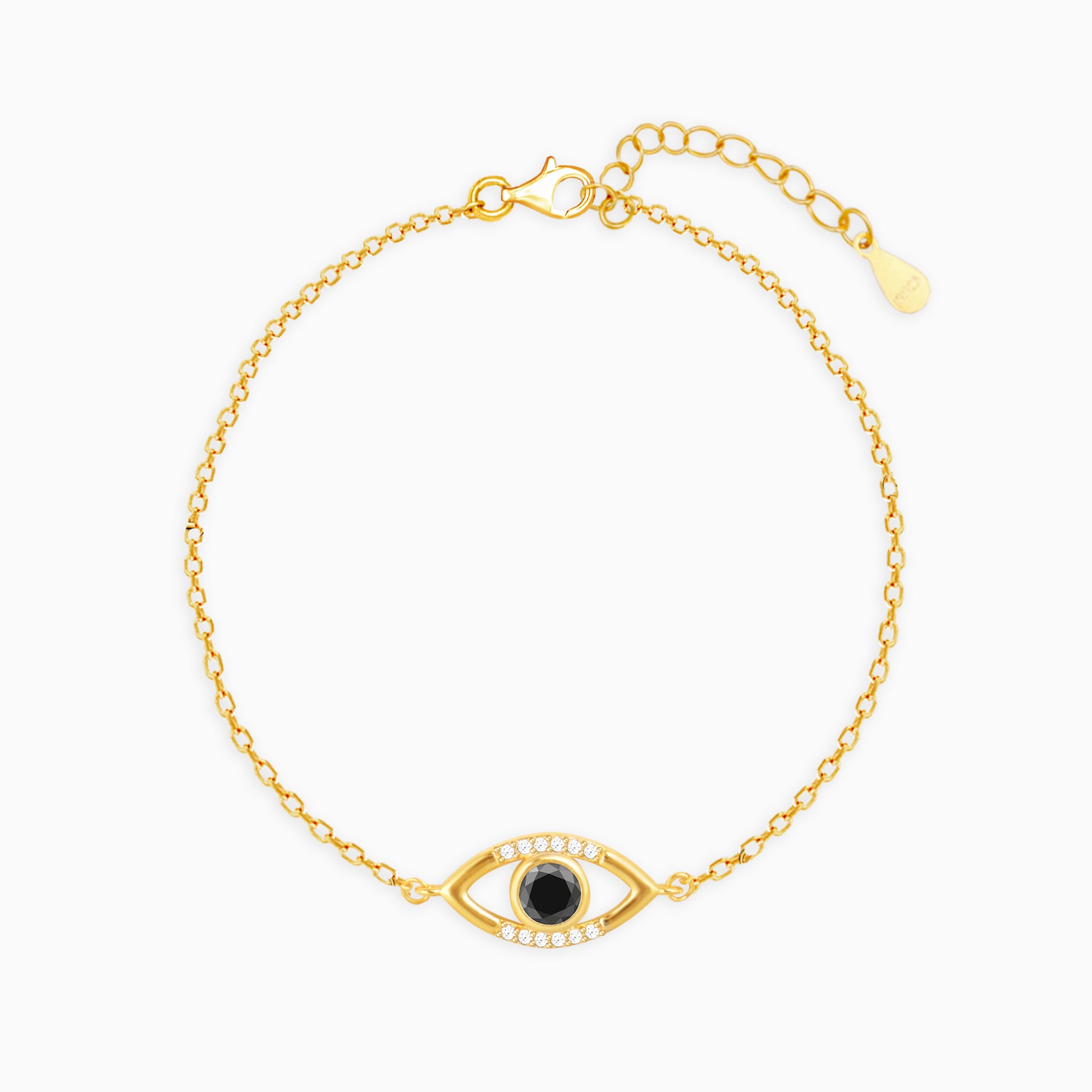 The Golden Raven Black Evil Eye Bracelet has a classic evil-eye design juxtaposed with a raven black-hued coloured stone in the centre.