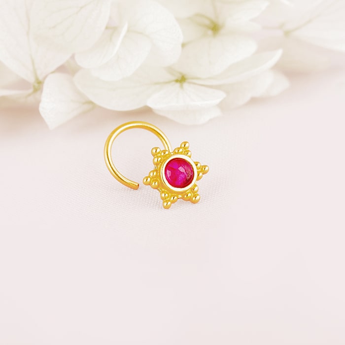 The Golden Red Star Nose Pin is inspired by a blooming flower that opens up a ton of freshness and love.