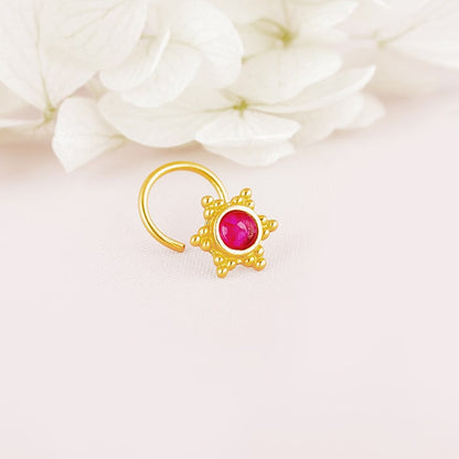 The Golden Red Star Nose Pin is inspired by a blooming flower that opens up a ton of freshness and l...