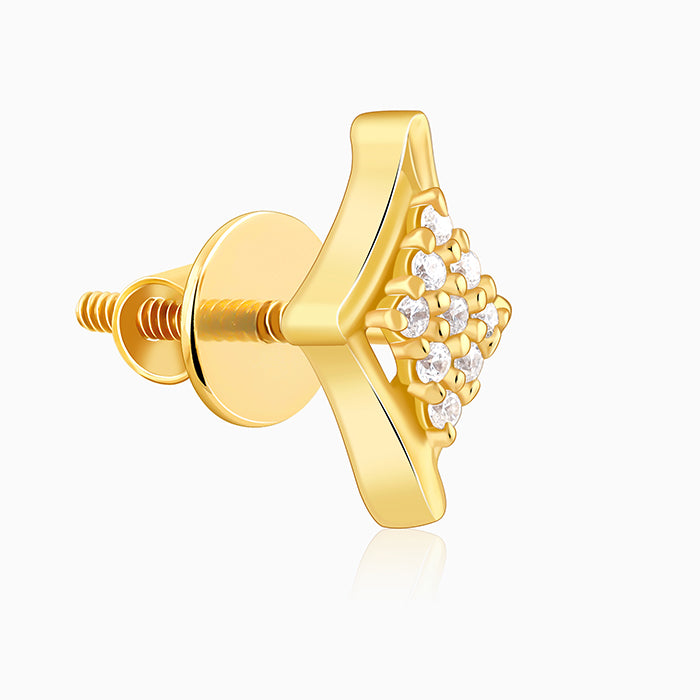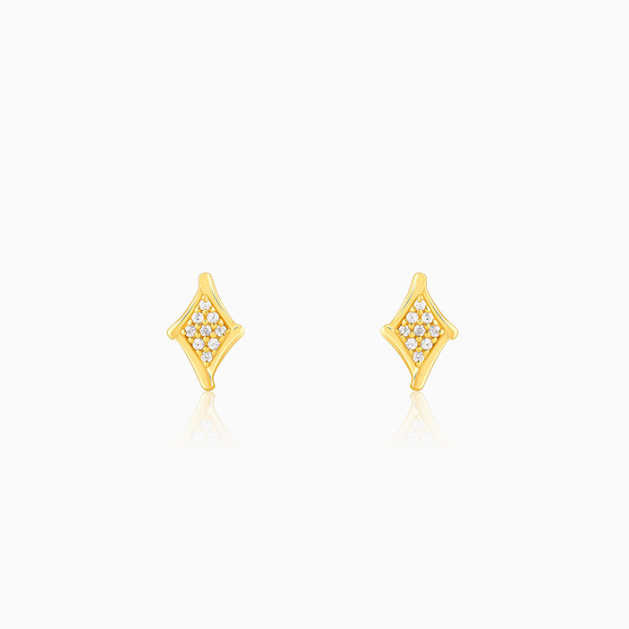 These gold plated studs for women feature a rhombus design, studded with zircons.