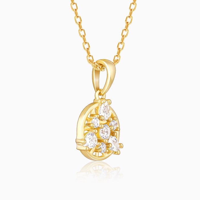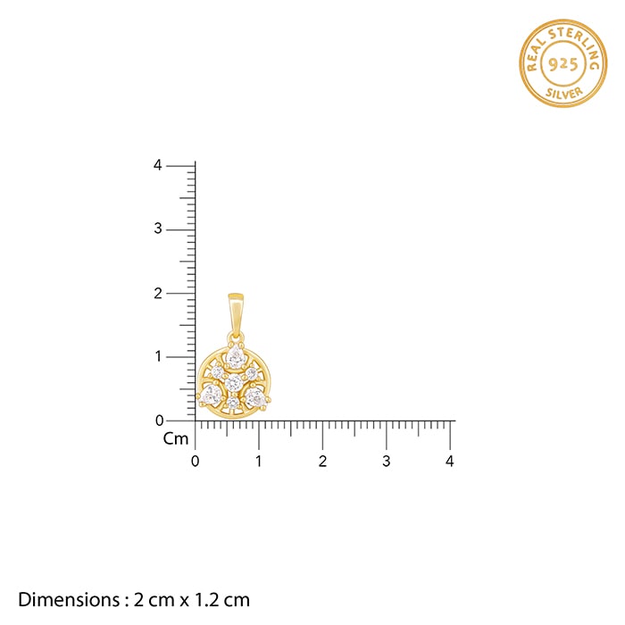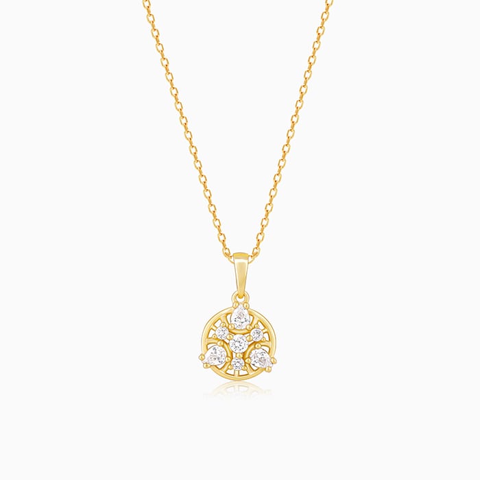 This golden pendant has a gorgeous flower motif set with zircons.