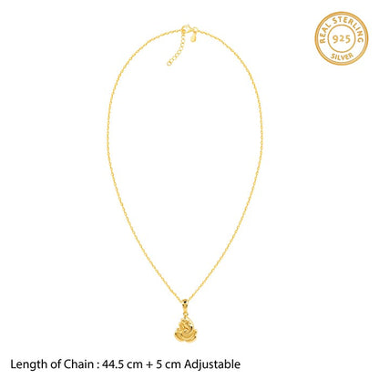This gold plated pendant with a link chain is designed for women. It features an elegant Ganesha motif.