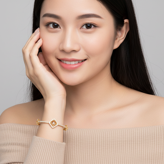 The Golden Square Prism Signature Bracelet is inspired by a moment of pure joy, such as a laugh with a friend or a heartfelt conversation with a loved one.