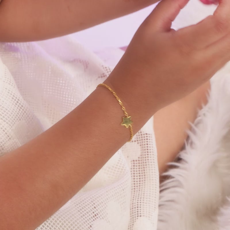 Celebrate the magic of childhood with this golden star bracelet. A heartfelt gift that shines as bright as your little one’s smile!