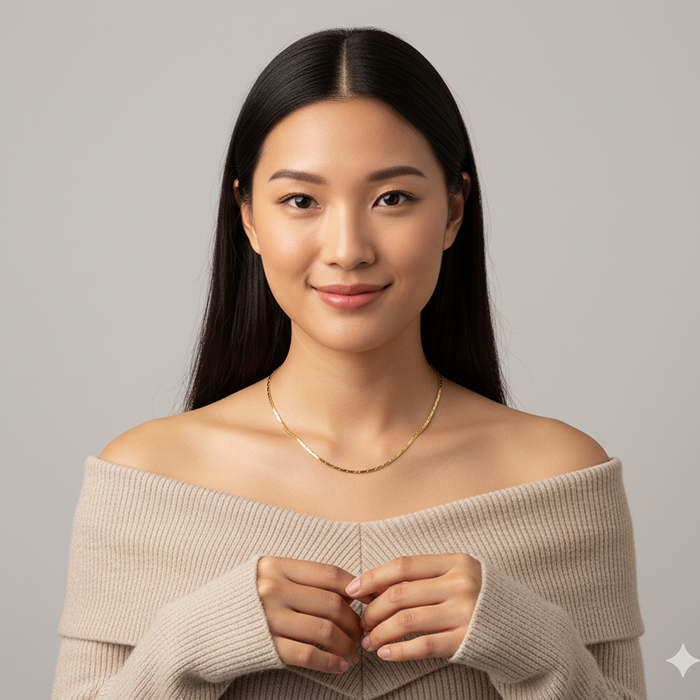 The chain is sturdy and the design is smooth with no edges getting stuck to hair or dress… very comfortable to wear and quality is really great … kind of luxury in budget