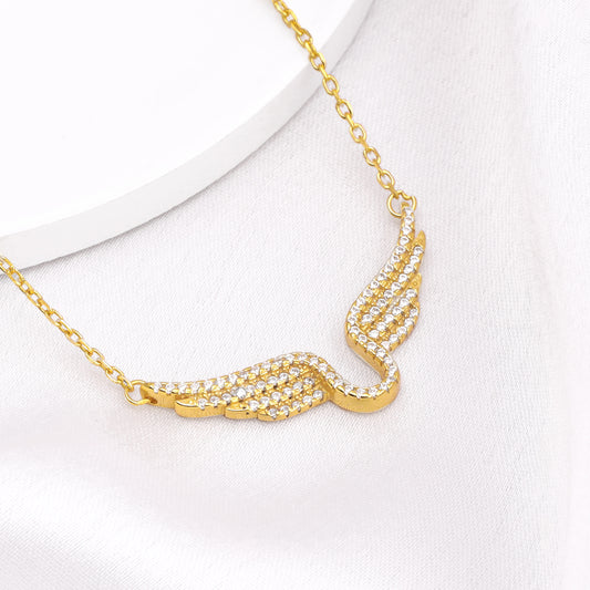 The Golden Studded Fluttering Necklace looks elaborate with its intricate wing details, dazzling with the studded zircons!
