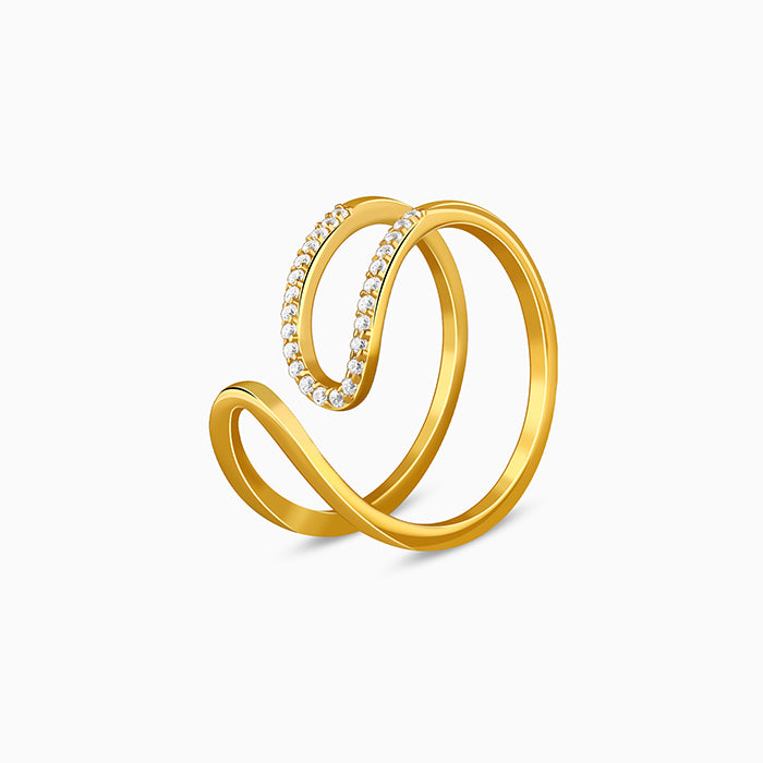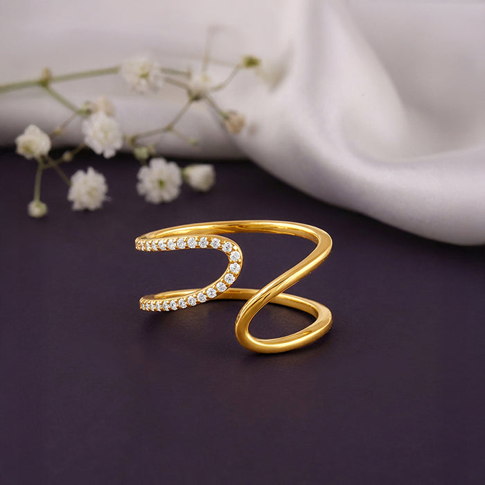 She enjoys pieces that move between playfulness and polish. This silver ring with gold plating features flowing, whimsical swirls, with selected sections studded with zircons for a soft shimmer.