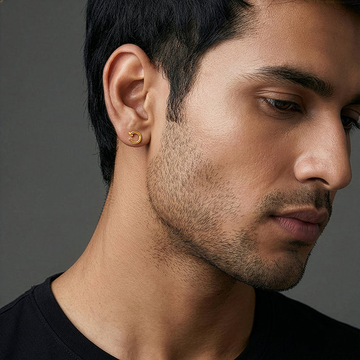 This stud is for the man who believes details define destiny, crafted with a minimalist open C-shaped design. Wear it as your signature touch, clean & confident.