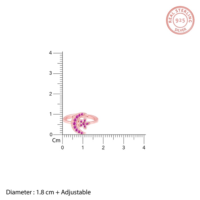 The rose gold ring has a moon and a star as the centrepiece with pink stones in it.