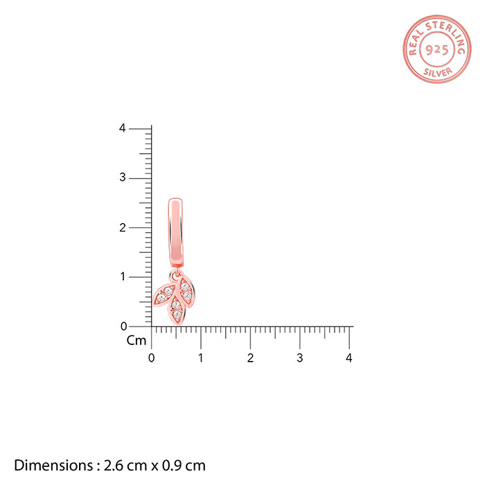 The Rose Gold Petal Trio Hoop Earrings have a beautiful three zircon studded petal dangle hanging from the rose gold hoop, giving the design an extra charm to add to your overall look.