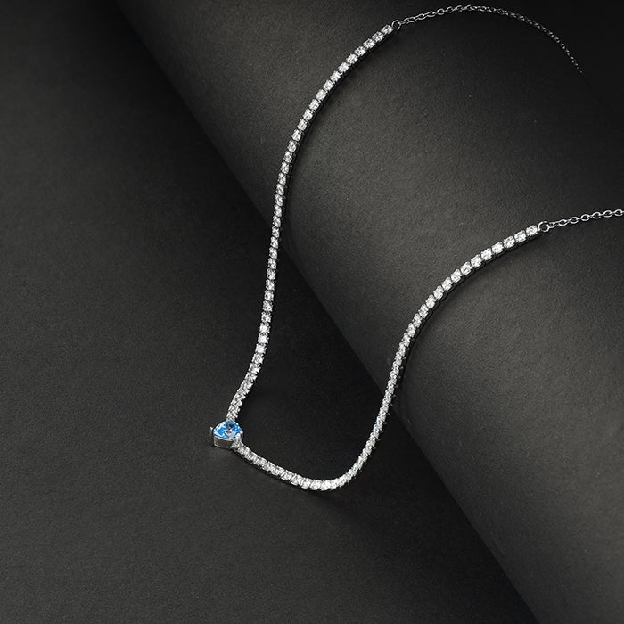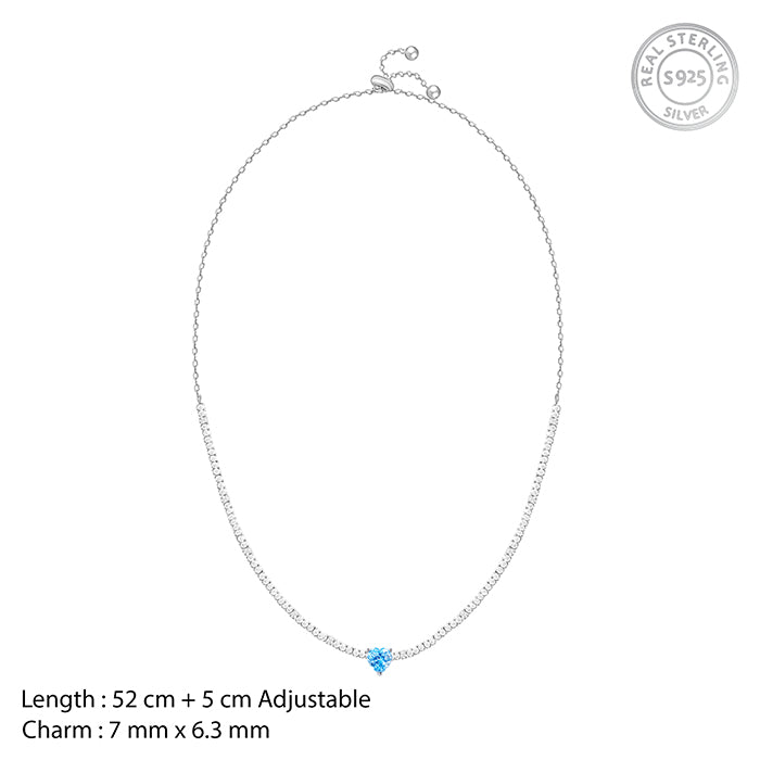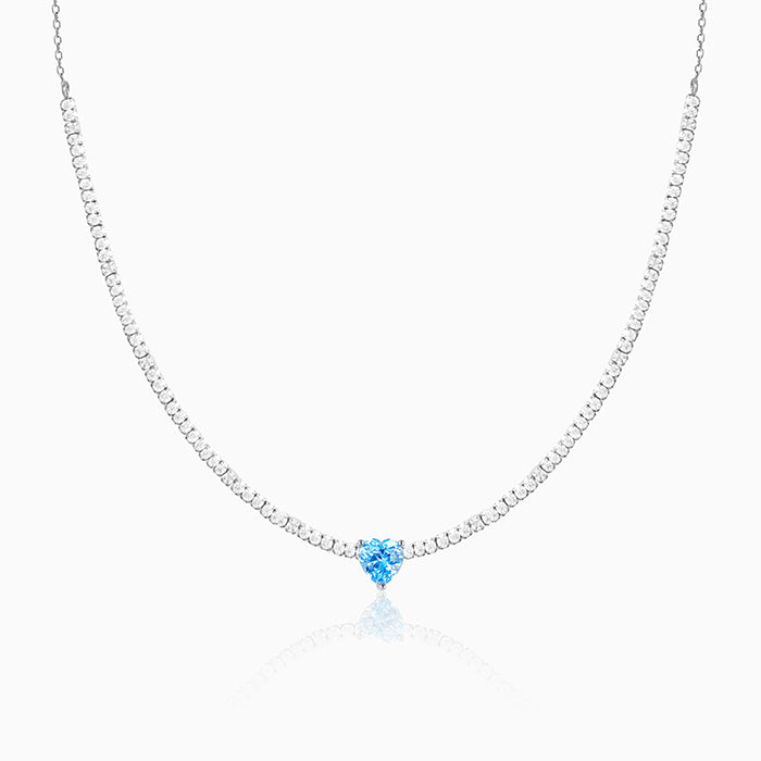 The Silver Blue Heart Choker has a blue heart charm with a tennis-style choker.