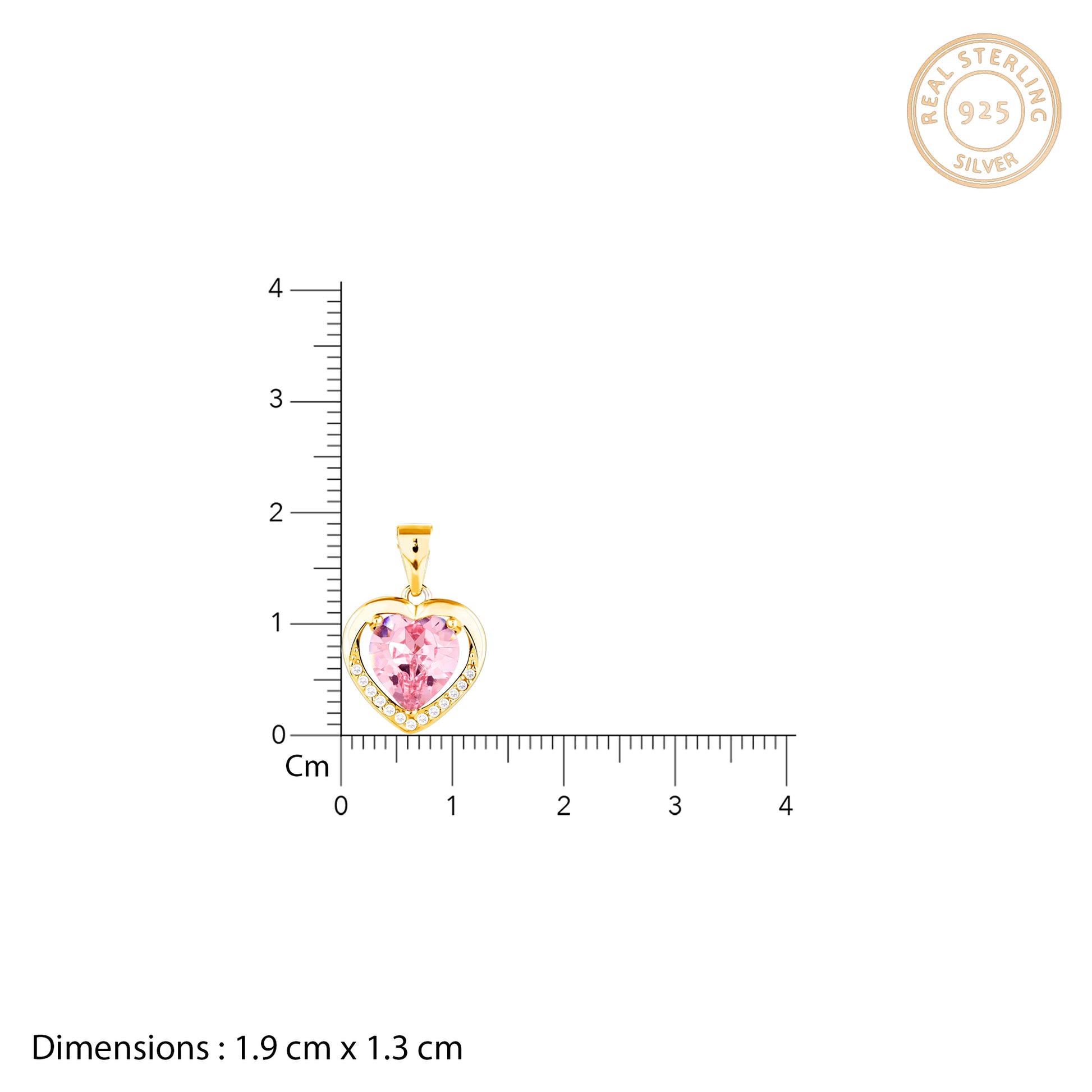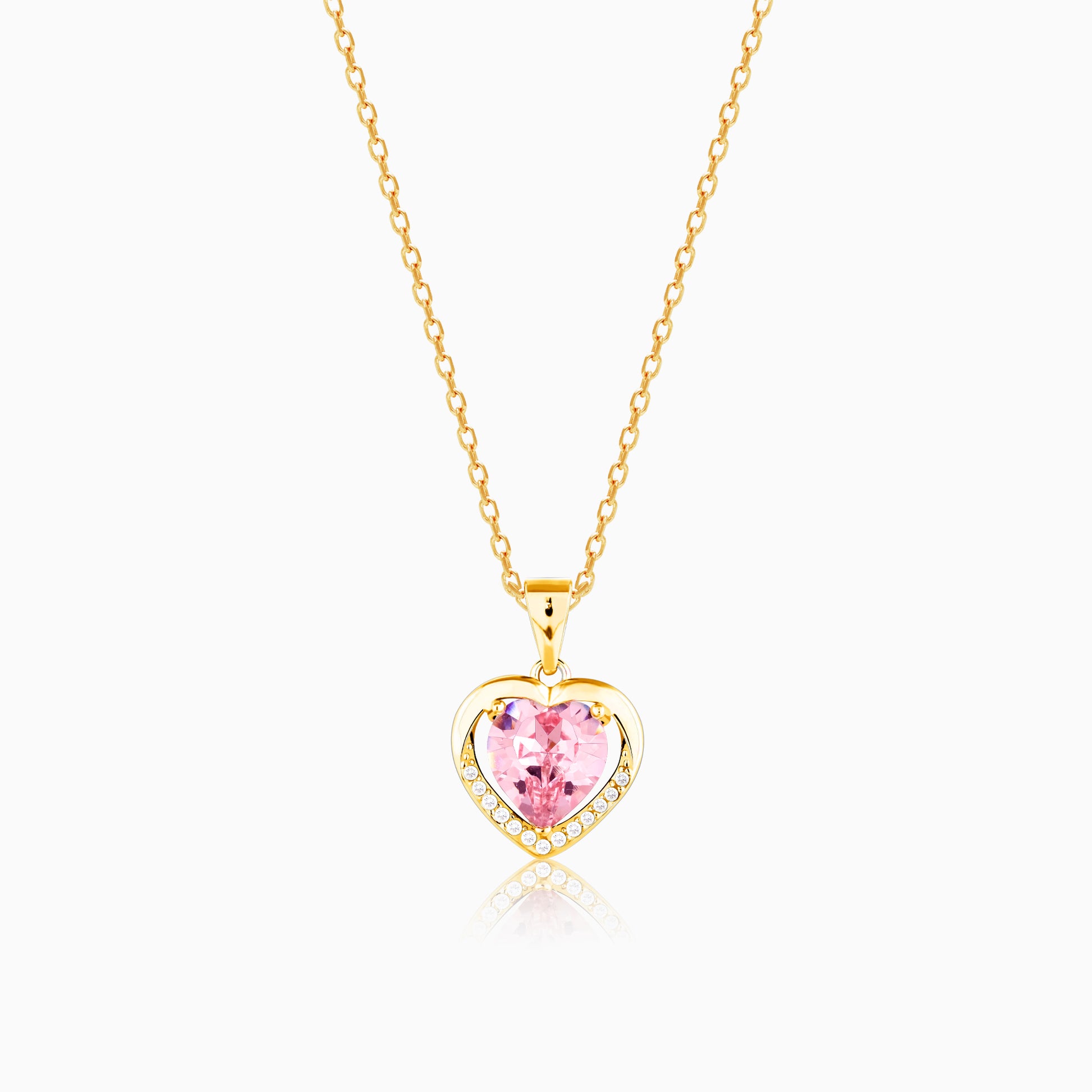 The Golden pendant has a pink heart-shaped stone in a heart-shaped golden frame.