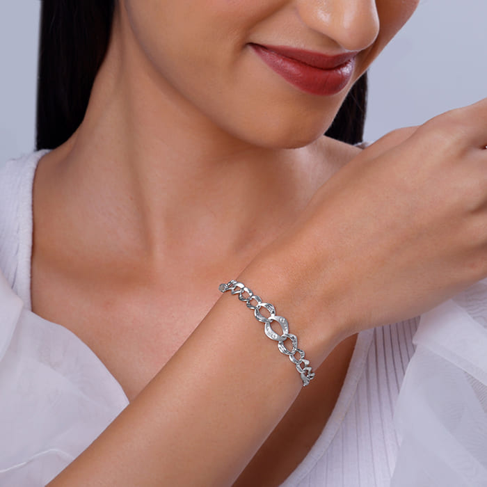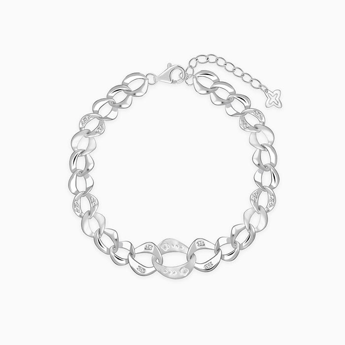When bonds are unbreakable—and your style is too.The Design: This sleek silver bracelet features a ...
