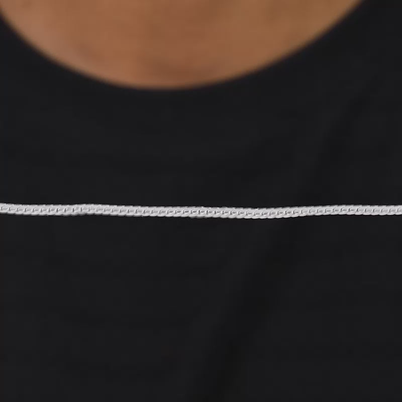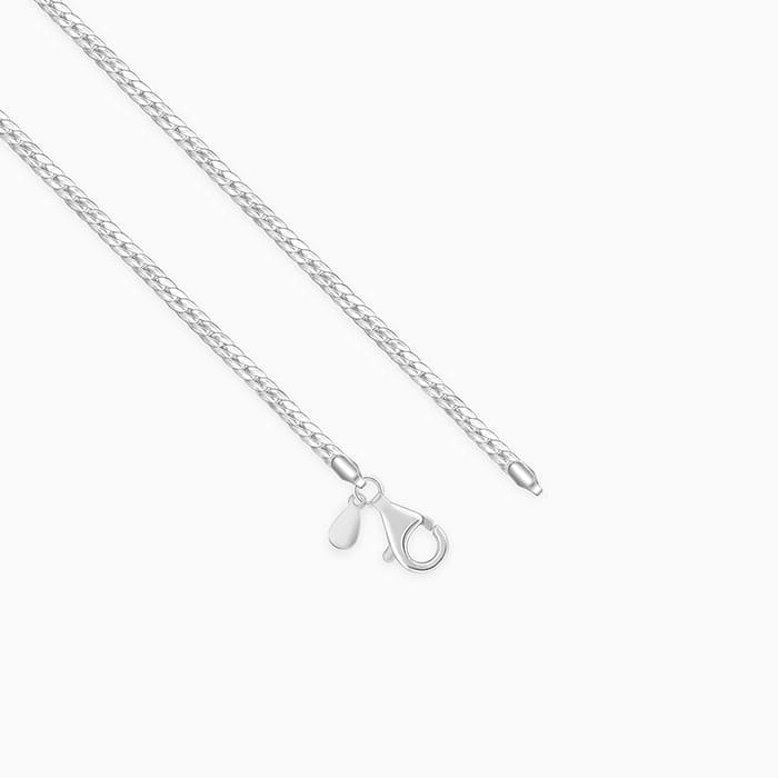 This silver chain has a box chain design.