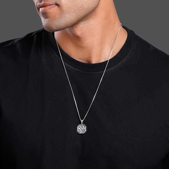 Oxidised Cyber Shard Pendant With Box Chain For Him