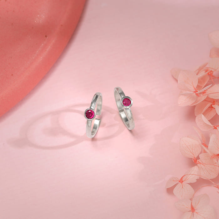These oxidised silver toe rings for women feature an adjustable design with a coloured stone accentuating each.
