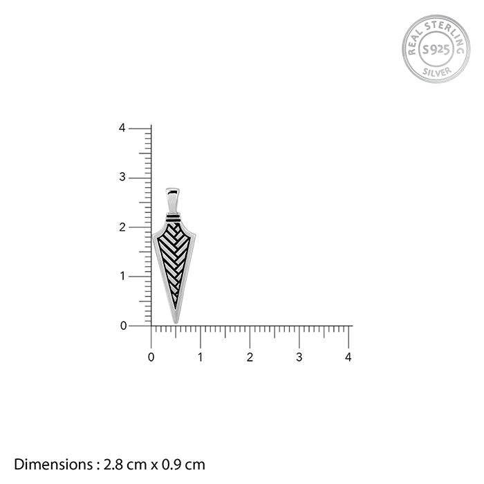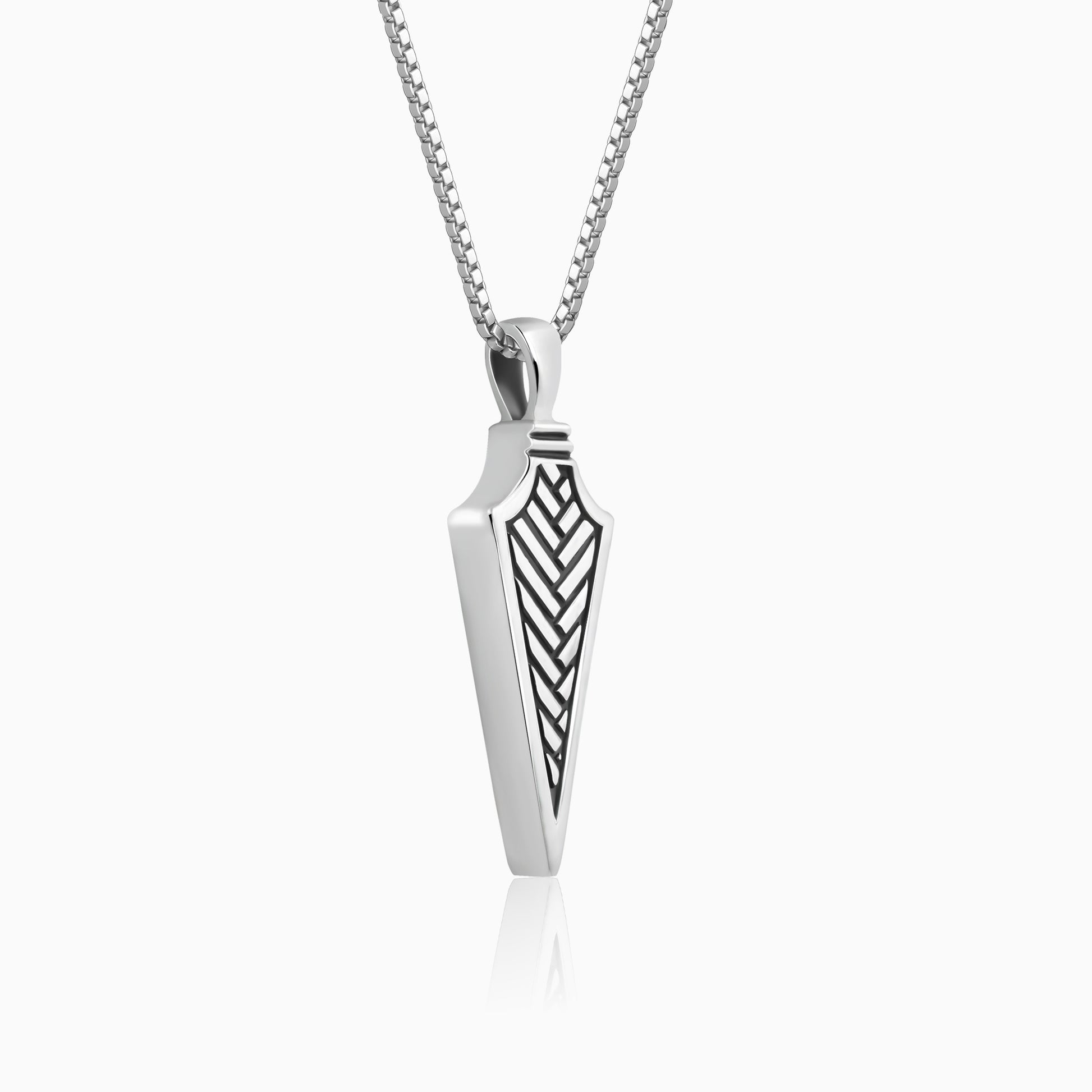 This oxidised silver pendant for men showcases a sharp arrowhead motif, accentuated with intricate inner details.