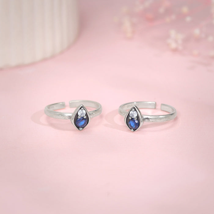 These oxidised silver toe rings for women feature a pear motif with coloured stones and zircon.