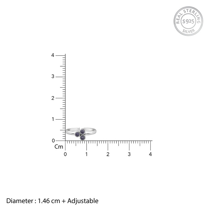 These oxidised silver toe rings for women feature an adjustable design with three coloured stones forming a cluster.