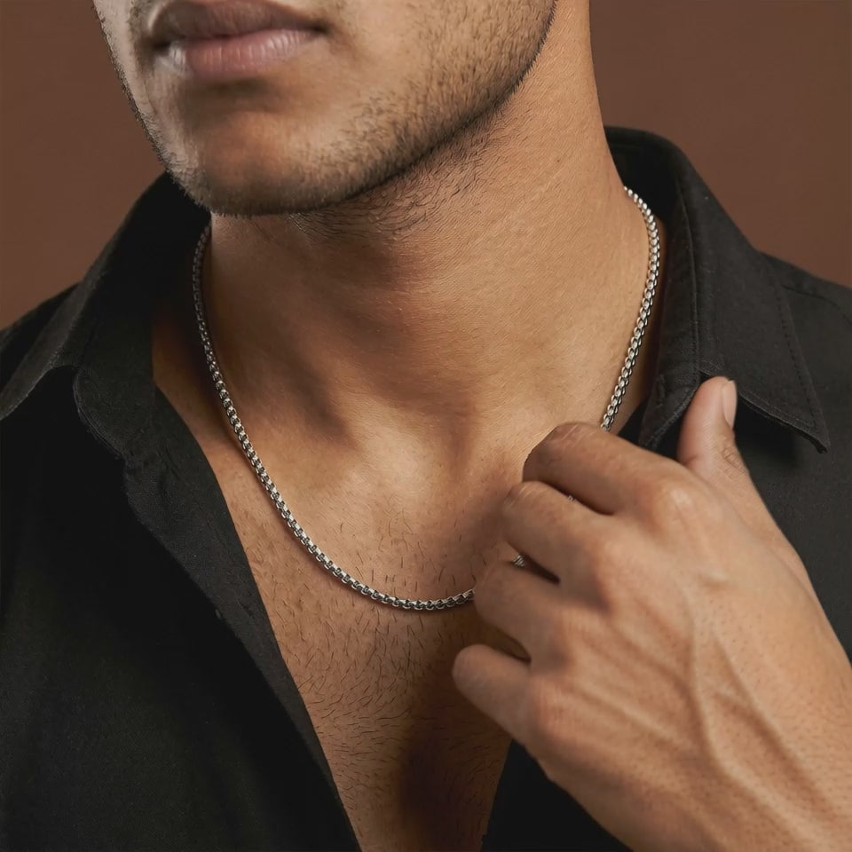 Oxidised Silver Flex Box Chain For Him