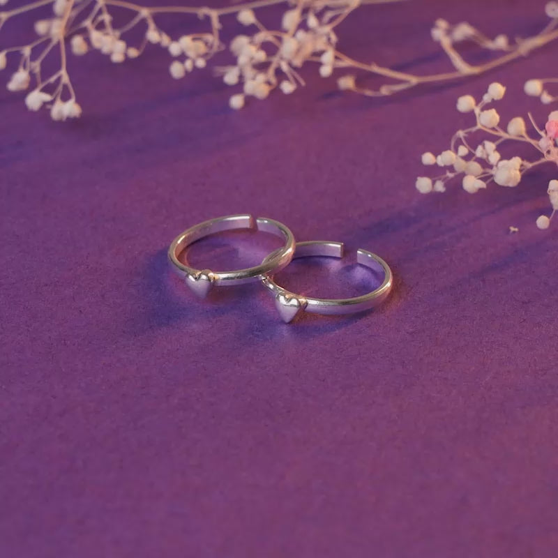These oxidised silver toe rings for women feature a heart motif.