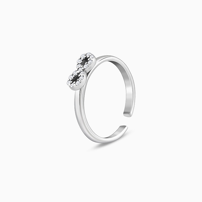 These oxidised silver toe rings for women showcase an elegant infinity design, with sparkling zircon stones for a timeless charm.